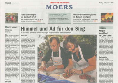 WAZ - Westdeutsche Allgemeine Zeitung [Moers, Kamp-Lintfort, Neukirchen-Vluyn]: "Acht Heißluftballone glühten im dunklen Stadtpark - Echte Hingucker waren ein Ballon in Form eines Katzenkopfes und 90 Bauchtänzerinnen." - Pressebericht zur Bauchtanz-Show beim Ballonglühen auf dem 9. Moerser Freiballonfestival [Montgolfiade] mit 90 Bauchtänzerinnen unter der künstlerischen und organisatorischen Gesamtleitung von Bauchtänzerin Soraya