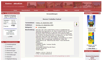 Xanten Aktuell - Das Onlineportal rund um Xanten: "Moerser Freiballon Festival - Seit dem Jahr 2001 erlebt Moers immer im Spätherbst ein Spektakel der besonderen Art..." - Pressebericht zur Bauchtanz-Show beim Ballonglühen auf dem 9. Moerser Freiballonfestival [Montgolfiade] mit 90 Bauchtänzerinnen unter der künstlerischen und organisatorischen Gesamtleitung von Bauchtänzerin Soraya