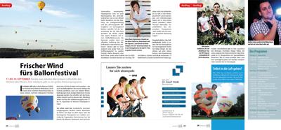 Magazin Moerser Monat (mit Veranstaltungskalender), Ausgabe September 2010 [Herausgeber: Verkehrs- und Heimatverein Moers e.V.]: "«Frischer Wind fürs Ballonfestival» 17. bis 19. SEPTEMBER: Bereits zum zehnten Mal erobern Luftschiffe den Himmel über Moers. Zum Jubiläum gibt es ein großes Rahmenprogramm - Im letzten Jahr gab es beim Moerser Freiballon-Festival einen kleinen Weltrekord, als 87 Frauen einen schönen Massenbauchtanz in Szene setzten. Auf dem Videoportal YouTube kann man sich das Ereignis noch ansehen – wie auch das Ballonglühen. Die neunte Auflage des Festivals profitierte auch von idealen Wetterbedingungen, kein einziger Ballonstart musste abgesagt werden. Das erhoffen sich die Veranstalter natürlich auch in diesem Jahr. Allerdings ändert sich bei der Jubiläumsausgabe vom 17. bis 19. September im Moerser Freizeitpark einiges..." - Pressebericht mit Nachlese und Nachberichterstattung zur Bauchtanz-Show beim Ballonglühen auf dem 9. Moerser Freiballonfestival [Montgolfiade] mit 90 Bauchtänzerinnen unter der künstlerischen und organisatorischen Gesamtleitung von Bauchtänzerin Soraya und Vorabbericht zum 10. ENNI Ballonfestival 2010 des Festival-Hauptsponsors ENNI - Energie Wasser Niederrhein GmbH, Moers